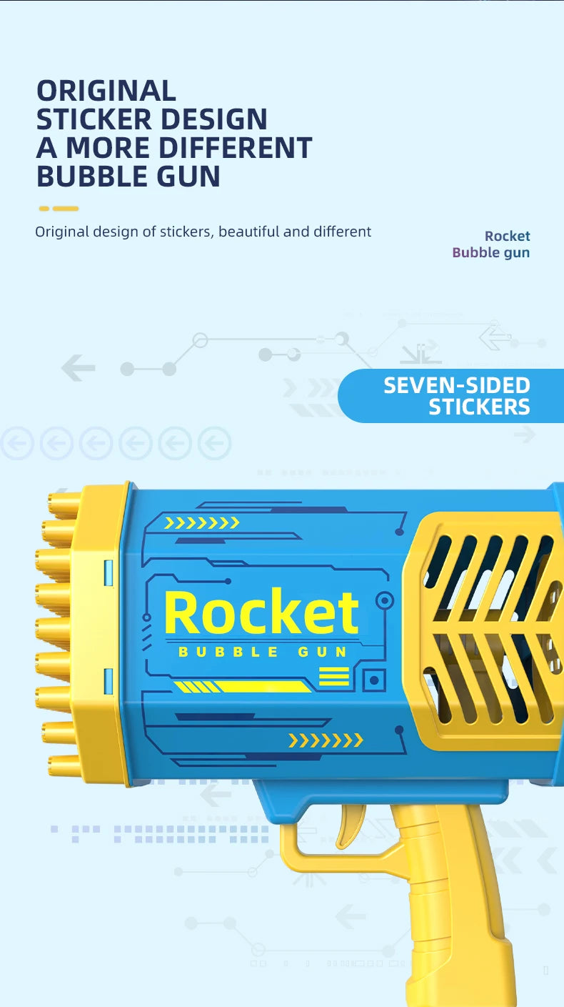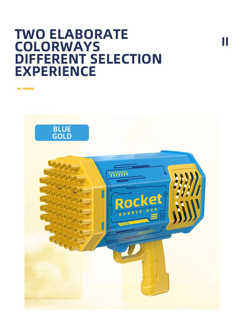 -Innovative Bubble Gun Design: The bubble rocket launcher has 69 bubble holes, blowing thousands of colorful bubbles every minute.with colorful light.more funny in night